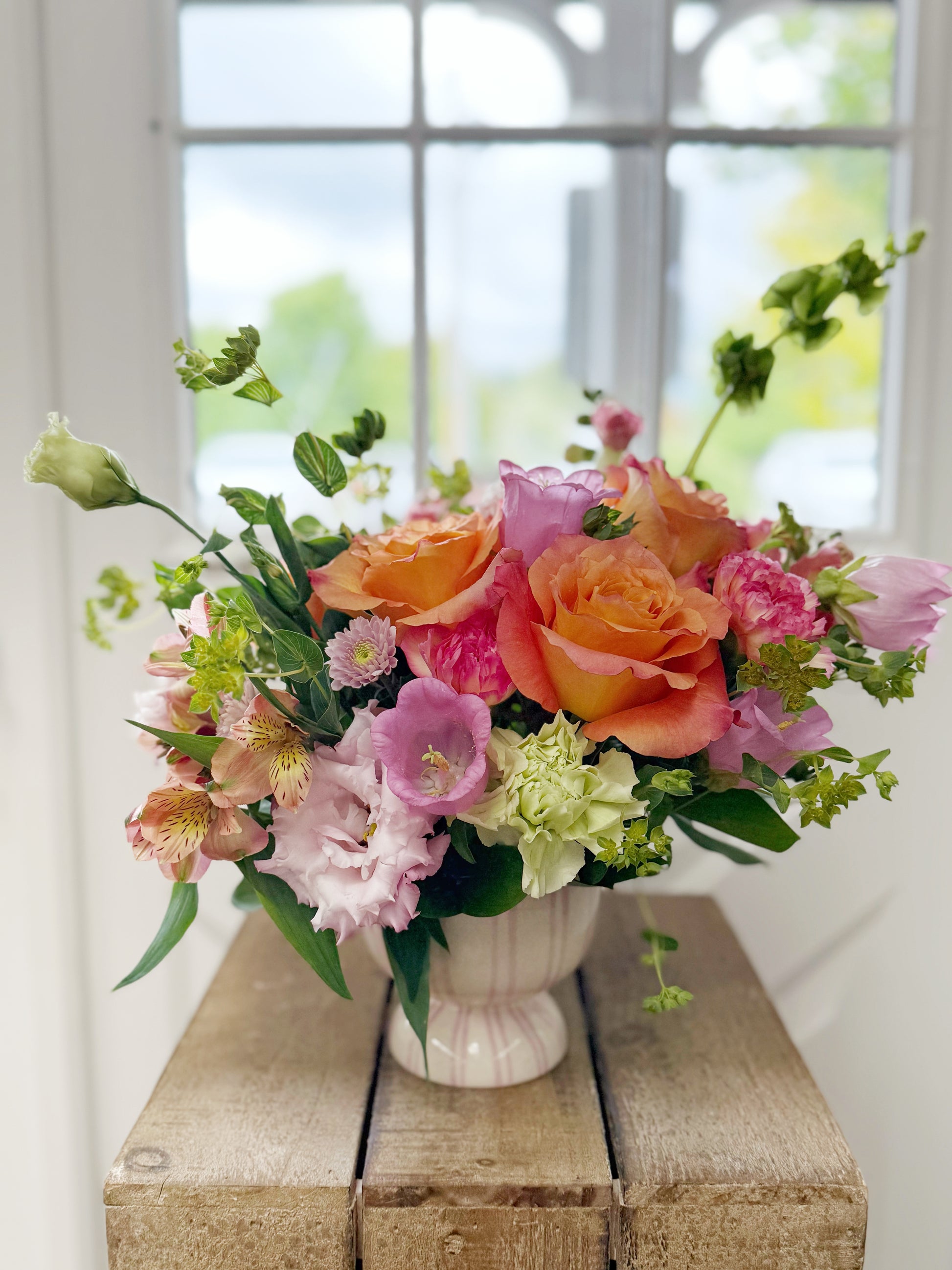 At Wild Iris, every arrangement is thoughtfully crafted with care, creativity, and seasonally available blooms. While the photos you see represent the overall spirit, style, and color palette of each design, the exact flowers—or one-of-a-kind vessels—may vary depending on seasonal availability and what’s freshest in our cooler.